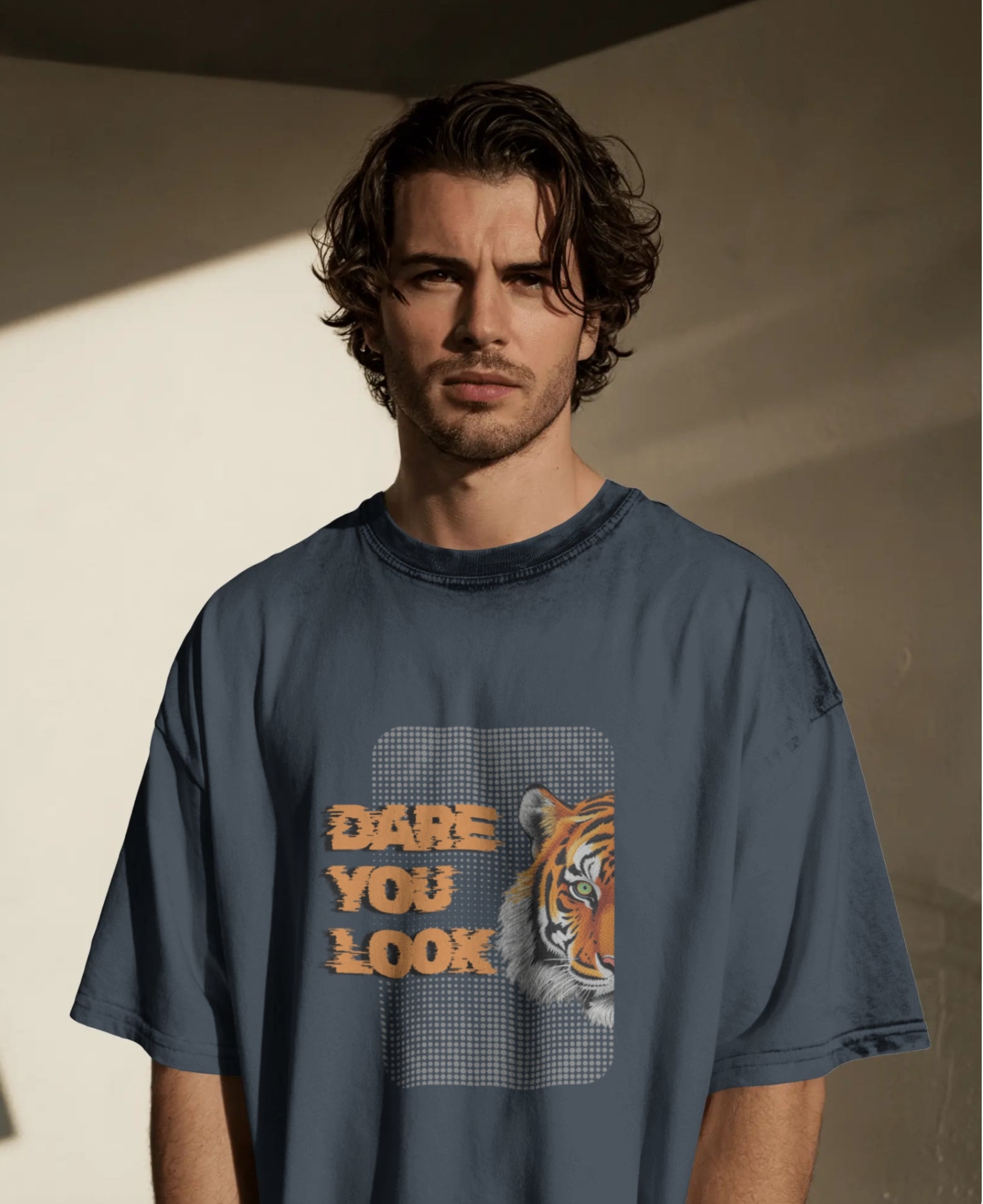 Embrace bold style with the "Dare You look!" featuring a striking tiger face print. This design captures the fierce and captivating nature of the tiger, making it a powerful statement piece. Perfect for those who want to express confidence and individuality in their wardrobe with an expert touch of artistry and detail.